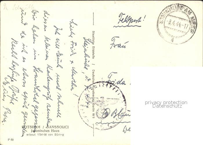 72394928 alte Postkarte Potsdam Sanssouci Japanisches Haus postalisch gelaufen Feldpost Erhaltung siehe scans KatCode: 11110012054000