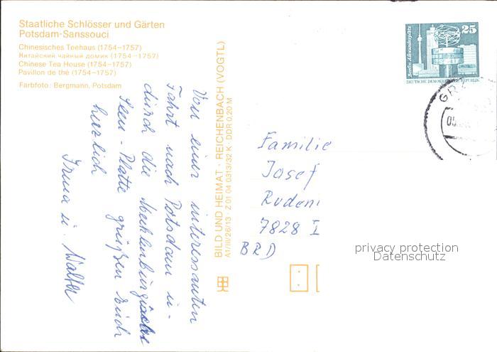 72350103 alte Postkarte Potsdam Schloss Garten Sanssouci Chinesisches Teehaus postalisch gelaufen Erhaltung siehe scans KatCode: 11110012054000