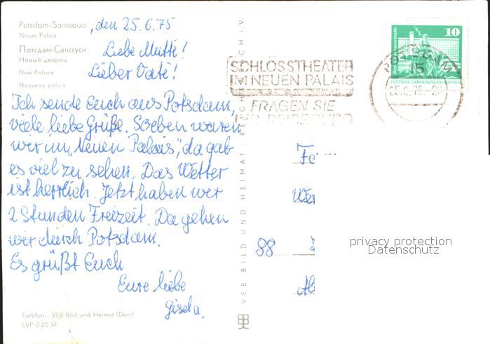 72337135 alte Postkarte Potsdam Schloss Sanssouci Neues Palais postalisch gelaufen Erhaltung siehe scans KatCode: 11110012054000