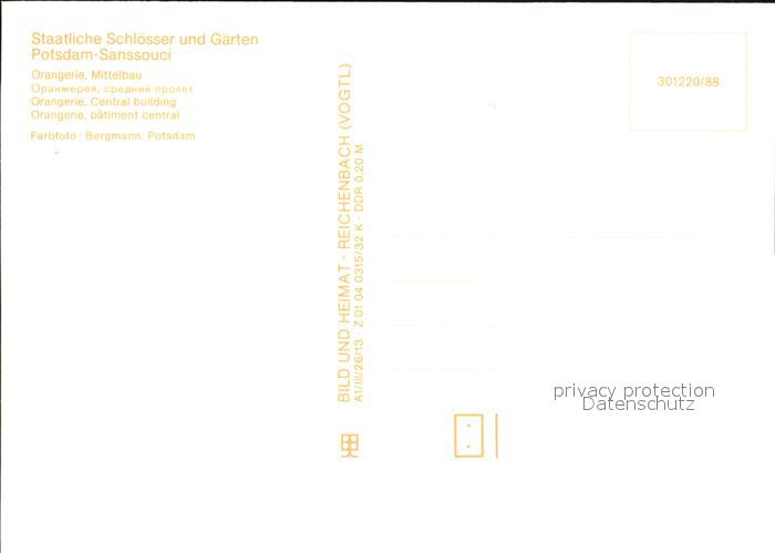 72585783 Potsdam Schloss Sanssouci Orangerie Mittelbau postalisch nicht gelaufen Erhaltung siehe scans [LiesaD40] KatCode: 11110012054000