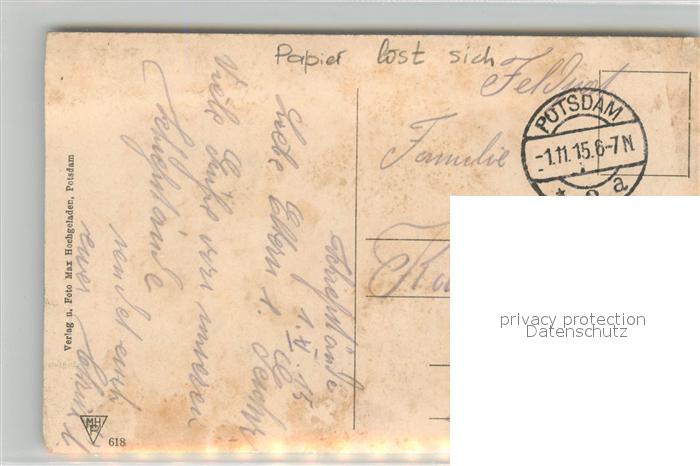 33219728 alte Postkarte Potsdam Waldschaenke Jaegerschiessstaenden postalisch gelaufen Feldpost Erhaltung siehe scans [PaolaD17] KatCode: 11110012054000
