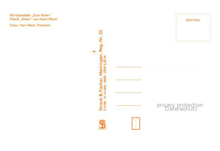 73765004 Potsdam Waldstadt HO Gaststaette Zum Keiler Plastik Keiler postalisch nicht gelaufen Erhaltung siehe scans [WerneD78] KatCode: 11110012054000