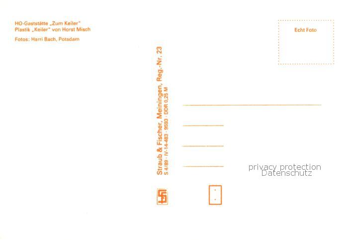 73765000 Potsdam Waldstadt HO Gaststaette Zum Keiler Plastik Keiler postalisch nicht gelaufen Erhaltung siehe scans [WerneD78] KatCode: 11110012054000