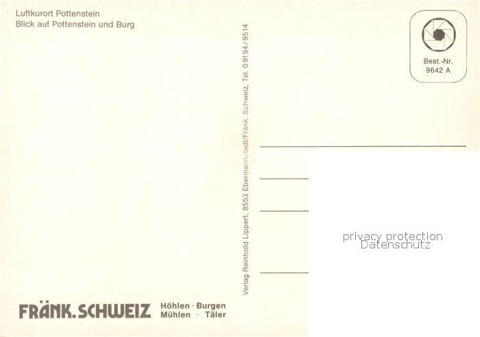 73214298 Pottenstein Oberfranken Ansicht mit Burg Naturpark Fraenkische Schweiz postalisch nicht gelaufen Erhaltung siehe scans [FriedD77] KatCode: 11110009472179