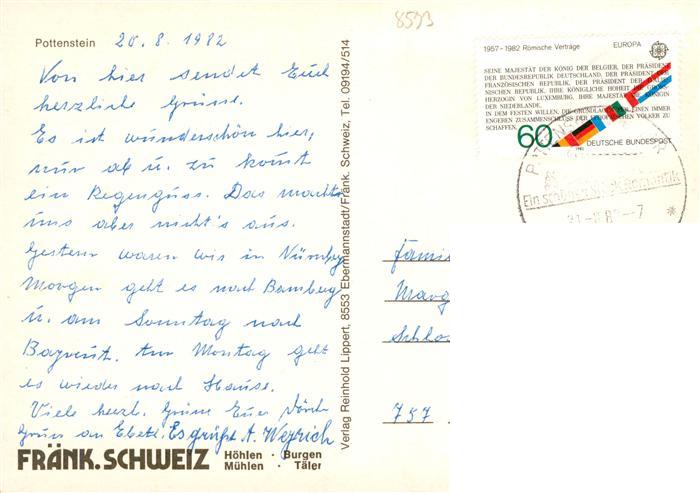 73932333 alte Postkarte Pottenstein Oberfranken Brunnen Kirche postalisch gelaufen Erhaltung siehe scans [WerneD78] KatCode: 11110009472179