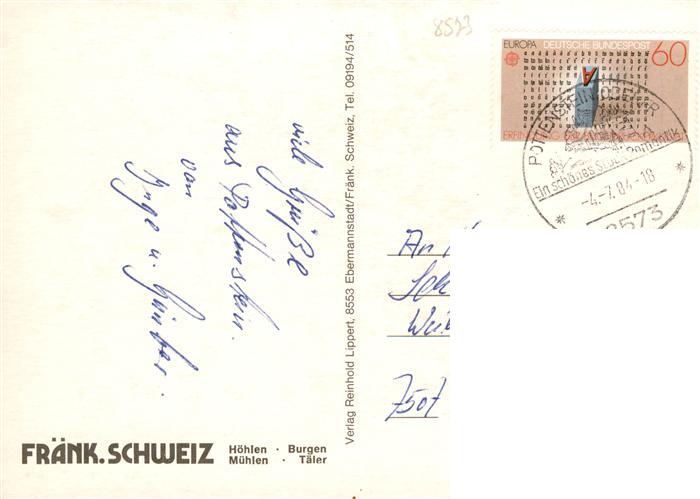 73932307 alte Postkarte Pottenstein Oberfranken Burgruine Panorama Fachwerkhaus Brunnen Minigolf postalisch gelaufen Erhaltung siehe scans [WerneD78] KatCode: 11110009472179