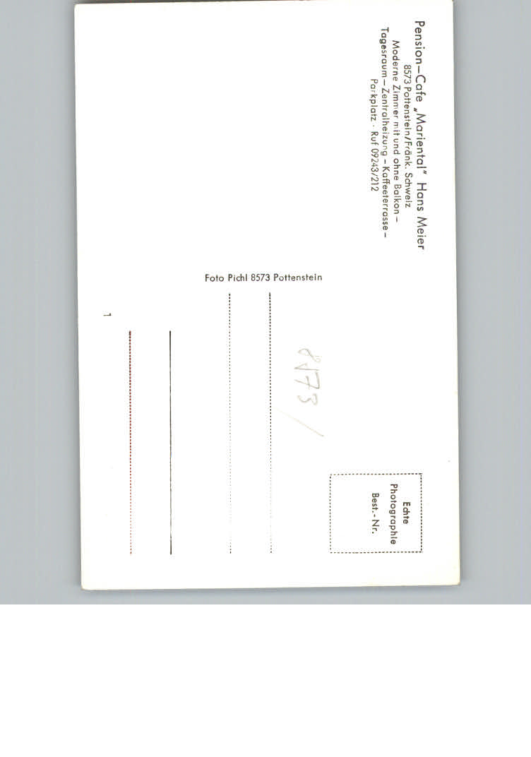 31163423 Pottenstein Oberfranken Cafe Pension Mariental postalisch nicht gelaufen KatCode: 11110009472179