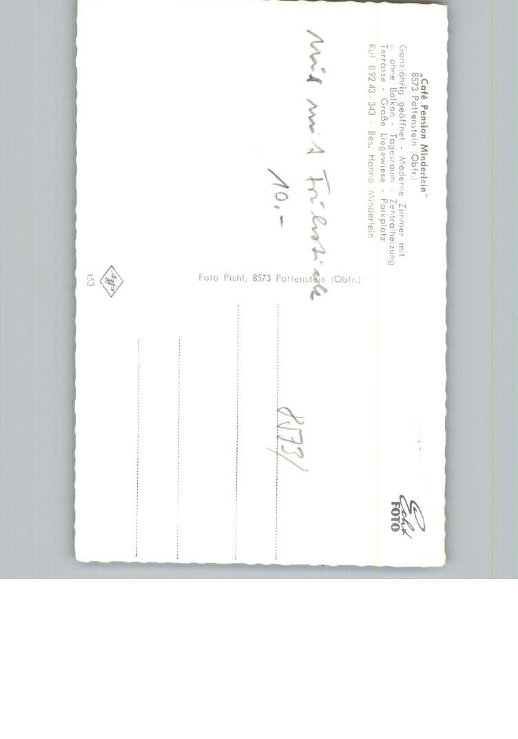31163442 Pottenstein Oberfranken Cafe Pension Minderlein postalisch nicht gelaufen KatCode: 11110009472179