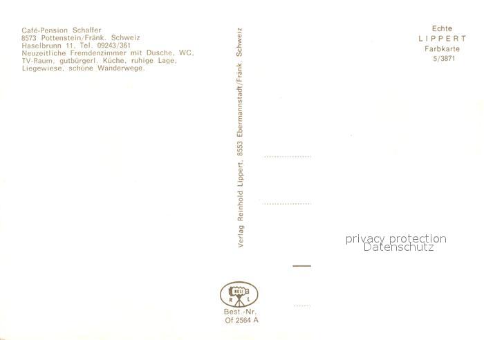 73047425 Pottenstein Oberfranken Cafe Pension Schaffer Gastraeume postalisch nicht gelaufen Erhaltung siehe scans [WerneD78] KatCode: 11110009472179