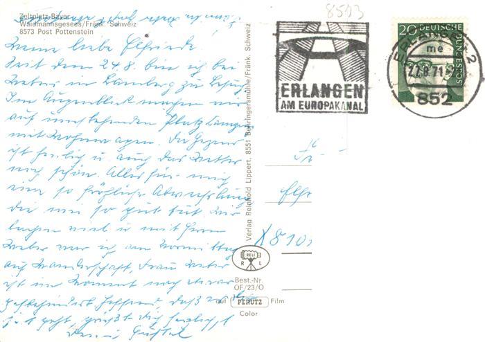 73937174 alte Postkarte Pottenstein Oberfranken Campingplatz Pottenstein Panorama Restaurant Terrasse postalisch gelaufen Erhaltung siehe scans [WerneD78] KatCode: 11110009472179