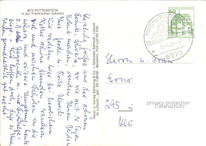 71847678 alte Postkarte Pottenstein Oberfranken Fliegeraufnahme postalisch gelaufen Erhaltung siehe scans KatCode: 11110009472179