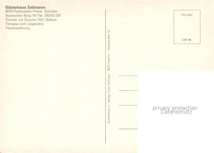 73717263 Pottenstein Oberfranken Gaestehaus Zeilmann Zimmer Gaststube postalisch nicht gelaufen Erhaltung siehe scans [WerneD78] KatCode: 11110009472179