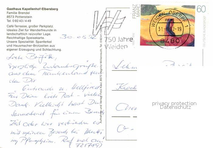 72714552 alte Postkarte Pottenstein Oberfranken Gasthaus Kapellenhof Elbersberg Waldpartie Felsen postalisch gelaufen Erhaltung siehe scans [FriedD77] KatCode: 11110009472179