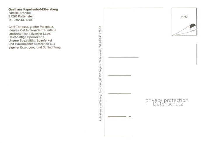 72962692 Pottenstein Oberfranken Gasthaus Kapellenhof-Elbersberg postalisch nicht gelaufen Erhaltung siehe scans [NatalD47] KatCode: 11110009472179