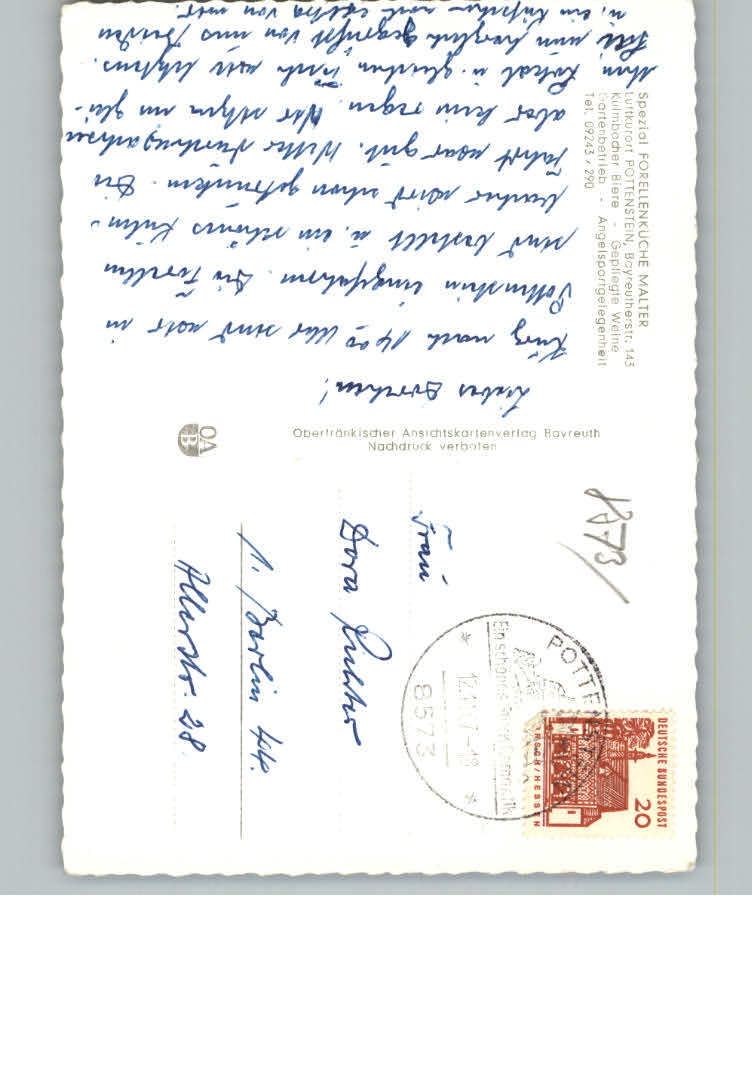 31162647 Pottenstein Oberfranken Gaststaette Malter postalisch nicht gelaufen KatCode: 11110009472179