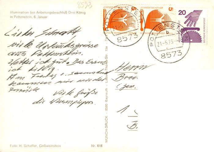 73932330 alte Postkarte Pottenstein Oberfranken Illumination bei Anbetungsschluss Drei Koenig postalisch gelaufen Erhaltung siehe scans [WerneD78] KatCode: 11110009472179