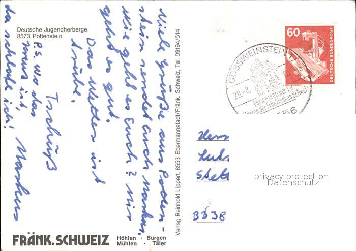 alte Postkarte Pottenstein Oberfranken Jugendherberge postalisch gelaufen Erhaltung siehe scans