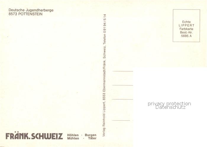 73076855 Pottenstein Oberfranken Jugendherberge postalisch nicht gelaufen Erhaltung siehe scans [KathaD81] KatCode: 11110009472179