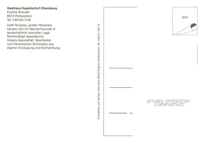 73517398 Pottenstein Oberfranken Kapellenhof Elbersberg postalisch nicht gelaufen Erhaltung siehe scans [KathaD81] KatCode: 11110009472179