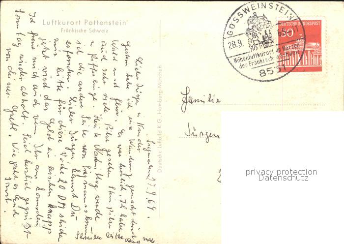 72262168 alte Postkarte Pottenstein Oberfranken Luftkurort Fraenkische Schweiz Fliegeraufnahme postalisch gelaufen Erhaltung siehe scans KatCode: 11110009472179