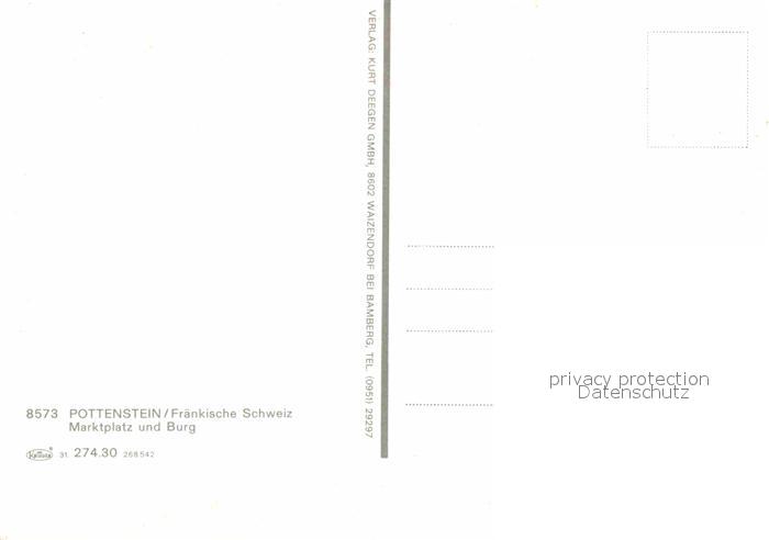 72741828 Pottenstein Oberfranken Marktplatz Brunnen und Burg postalisch nicht gelaufen Erhaltung siehe scans [WerneD78] KatCode: 11110009472179