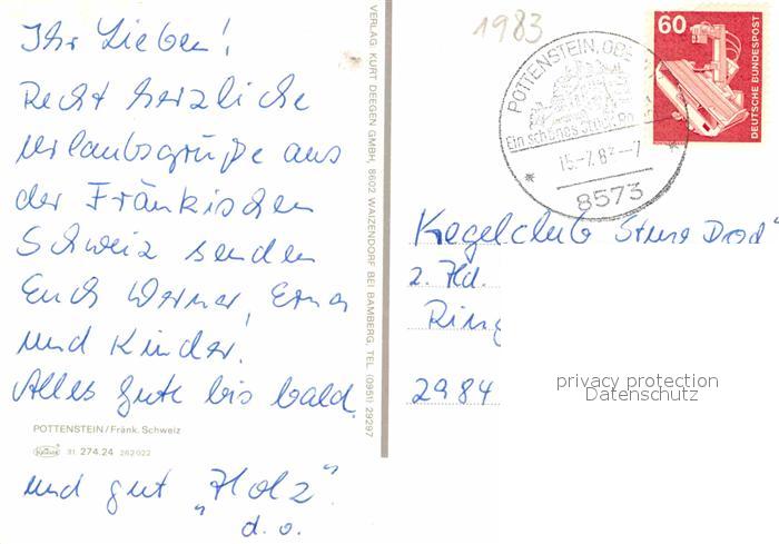 72898060 alte Postkarte Pottenstein Oberfranken Panorama postalisch gelaufen Erhaltung siehe scans [FriedD77] KatCode: 11110009472179