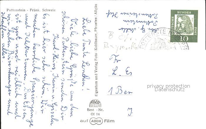 72466565 alte Postkarte Pottenstein Oberfranken Panorama Fraenkische Schweiz postalisch gelaufen Erhaltung siehe scans KatCode: 11110009472179