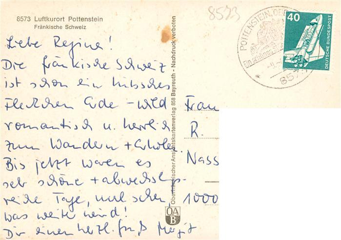 73932324 alte Postkarte Pottenstein Oberfranken Panorama postalisch gelaufen Erhaltung siehe scans [WerneD78] KatCode: 11110009472179