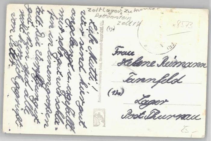 40234281 Pottenstein Oberfranken Pottenstein [handschriftlich] Zeltlager Zukunft KatCode 11110009472179
