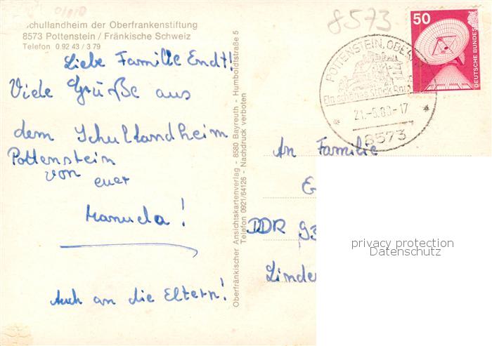 73867961 alte Postkarte Pottenstein Oberfranken Schullandheim der Oberfrankenstiftung postalisch gelaufen Erhaltung siehe scans [WerneD78] KatCode: 11110009472179
