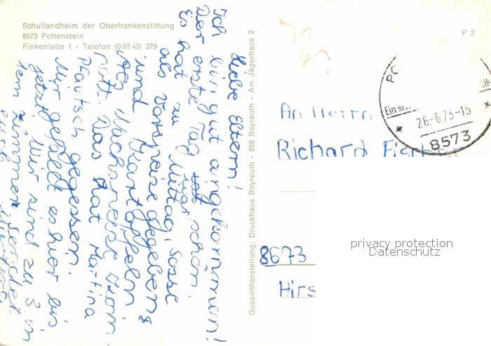 72885965 alte Postkarte Pottenstein Oberfranken Schullandheim Oberfrankenstiftung postalisch gelaufen Erhaltung siehe scans [FriedD77] KatCode: 11110009472179