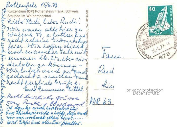 72628598 alte Postkarte Pottenstein Oberfranken Stausee im Weihersbachtal postalisch gelaufen Erhaltung siehe scans [WerneD78] KatCode: 11110009472179