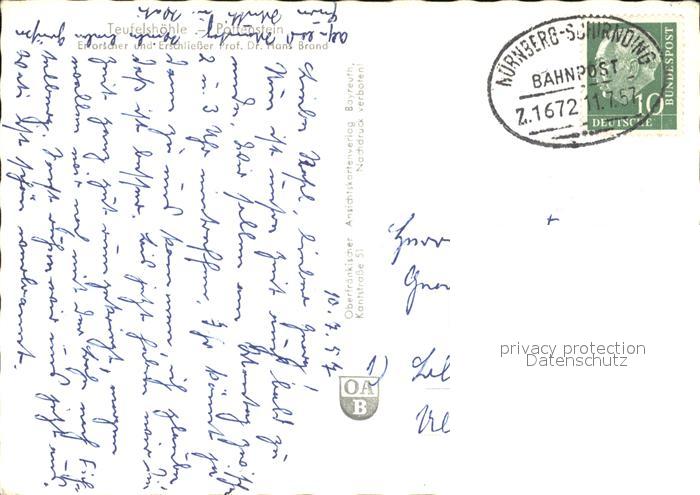 72444257 alte Postkarte Pottenstein Oberfranken Teufelshoehle postalisch gelaufen Erhaltung siehe scans KatCode: 11110009472179