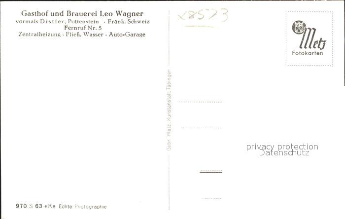 41815299 Pottenstein Oberfranken Totalansicht Gasthof Brauerei Fraenkische Schweiz postalisch nicht gelaufen Erhaltung siehe scans Alte Ansichtskarte Postkarte hz_F Katcode 11110009472179