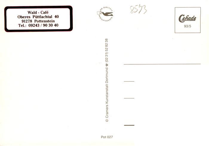73932646 Pottenstein Oberfranken Wald Cafe Oberes Puettlachtal Gastraum Wasserrad Panorama postalisch nicht gelaufen Erhaltung siehe scans [WerneD78] KatCode: 11110009472179