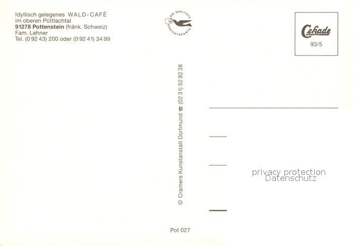 73165432 Pottenstein Oberfranken Wald Cafe Puettlachtal postalisch nicht gelaufen Erhaltung siehe scans [KathaD81] KatCode: 11110009472179