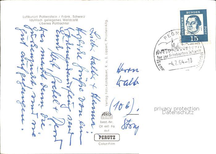 72556681 alte Postkarte Pottenstein Oberfranken Waldcafe Burg Kaub Eltz Schwarzwaelder Muehle Bruecke am Kwai postalisch gelaufen Erhaltung siehe scans [KathaD79] KatCode: 11110009472179