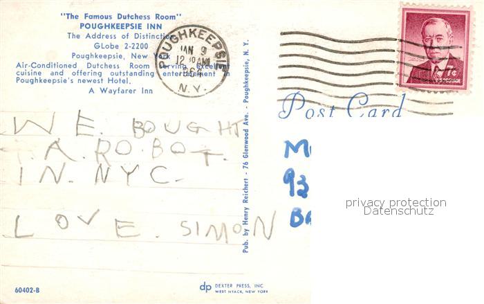 73131639 old postcard Poughkeepsie New York Famous Dutchess Room postalisch gelaufen Erhaltung siehe scans [KathaD81] KatCode: 14140340000000