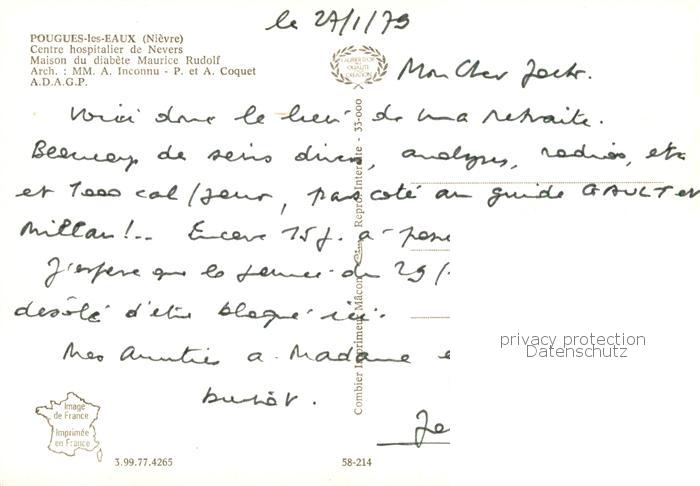 13797793 Pougues-les-Eaux 58 Nievre Centre hospitalier de Nevers Maison du ditabete Maurice Rudolf postalisch gelaufen Erhaltung siehe scans [WerneD78] carte postale Wern Katcode 11170058358214