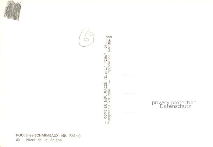 13161476 Poule-les-Echarmeaux Hotel de la Scierie postalisch nicht gelaufen Erhaltung siehe scans [KathaD81] KatCode: 11170069269160