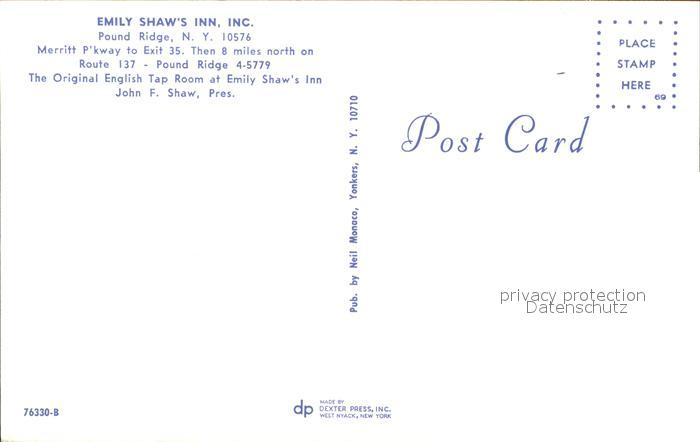 11688071 Pound Ridge Emily Shaws Inn Restaurant postalisch nicht gelaufen Erhaltung siehe scans KatCode: 14140340000000