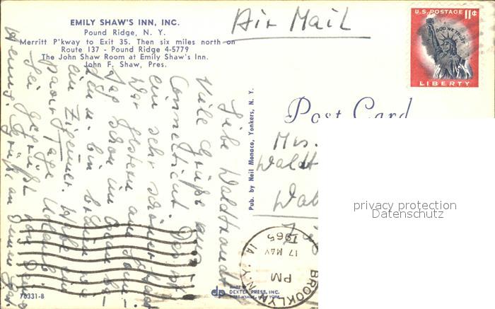 71940977 old postcard Pound Ridge Emily Shaw’s Inn Restaurant postalisch gelaufen Erhaltung siehe scans KatCode: 14140340000000