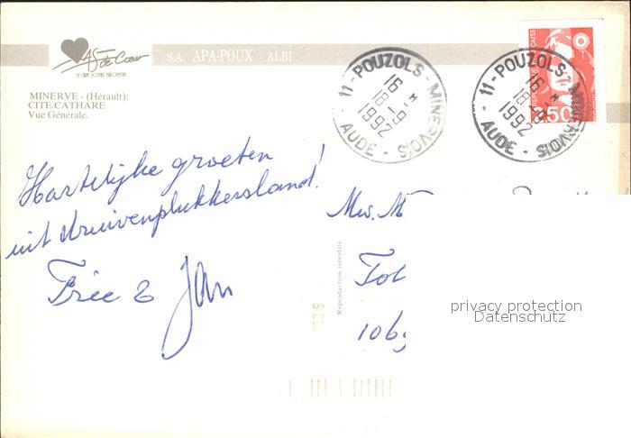 12012142 carte postale Pouzols Fliegeraufnahme Menerva Cite Cathare postalisch gelaufen Erhaltung siehe scans KatCode: 11170034234215