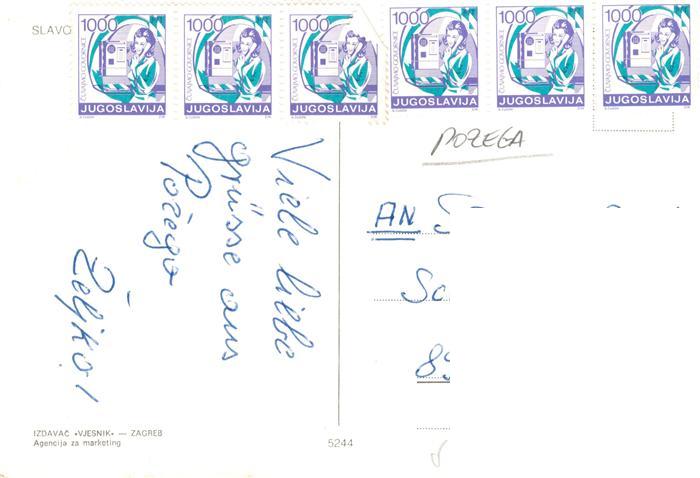 old postcard Pozega Croatia Teilansichten Denkmal postalisch gelaufen Erhaltung siehe scans [WerneD78]