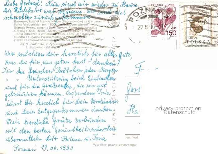 old postcard Poznan Posen Barokowy kosciol Franciszkanow Palac Mielzynskich Muzeum postalisch gelaufen Erhaltung siehe scans [FriedD77]