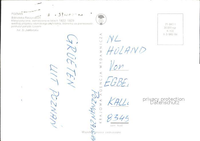 old postcard Poznan Posen Biblioteka Raczyriskich Bibliothek postalisch gelaufen Erhaltung siehe scans