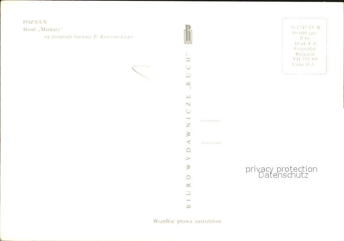 Poznan Posen Hotel Merkury postalisch nicht gelaufen Erhaltung siehe scans [LiesaD40]