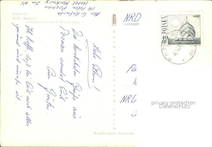 old postcard Poznan Posen Hotel Merkury postalisch gelaufen Erhaltung siehe scans
