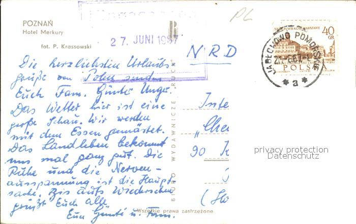 12358649 old postcard Poznan Posen Hotel Merkury Fliegeraufnahme postalisch gelaufen Erhaltung siehe scans KatCode: 11410