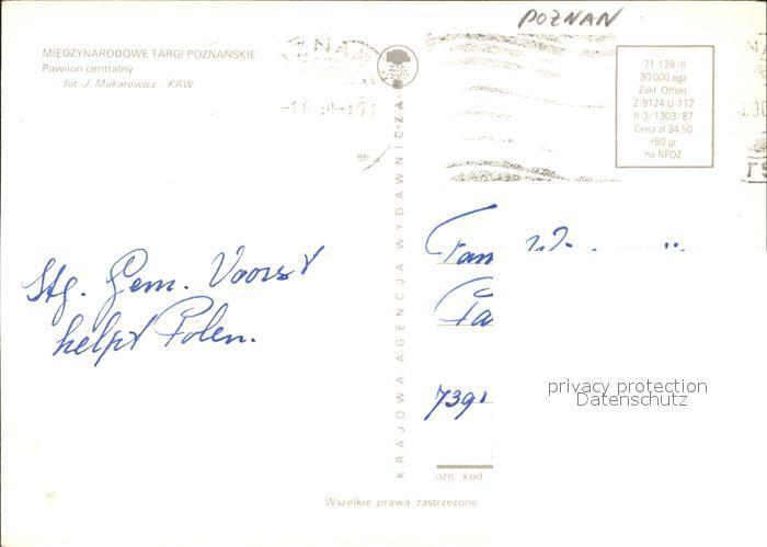 old postcard Poznan Posen Miedzynarodowe Targi Poznanskie Pawilon centralny postalisch gelaufen Erhaltung siehe scans
